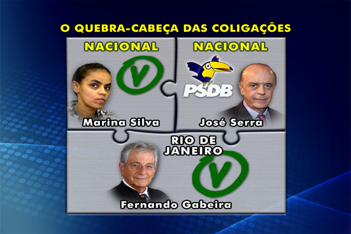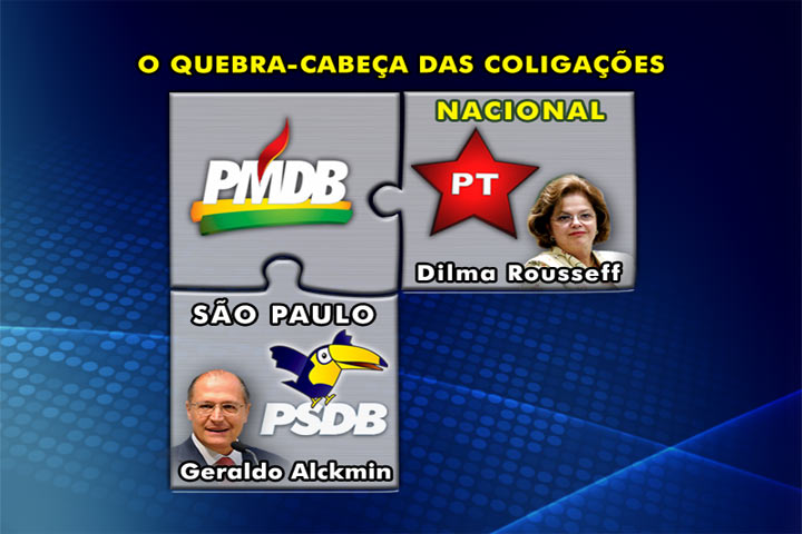 Infográfico em formato de quebra-cabeça explicando as coligações dos partidos nas eleições 2010. Criado para o Jornal da Gazeta
