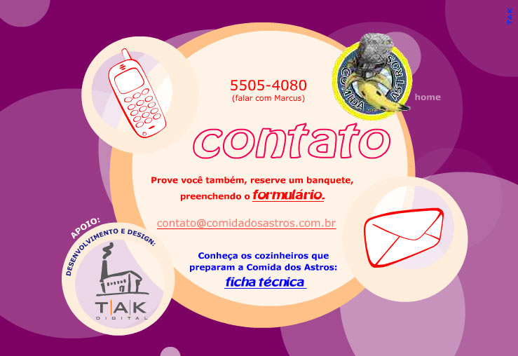 O Comida dos Astros é uma dupla de comediantes que fazem paródias com comidas. Portanto a idéia foi fazer um site descontraído e bem humorado refletindo as brincadeiras da dupla.